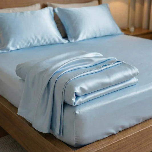 100% Silk Fitted Sheet for Bedroom - "Sky Blue"