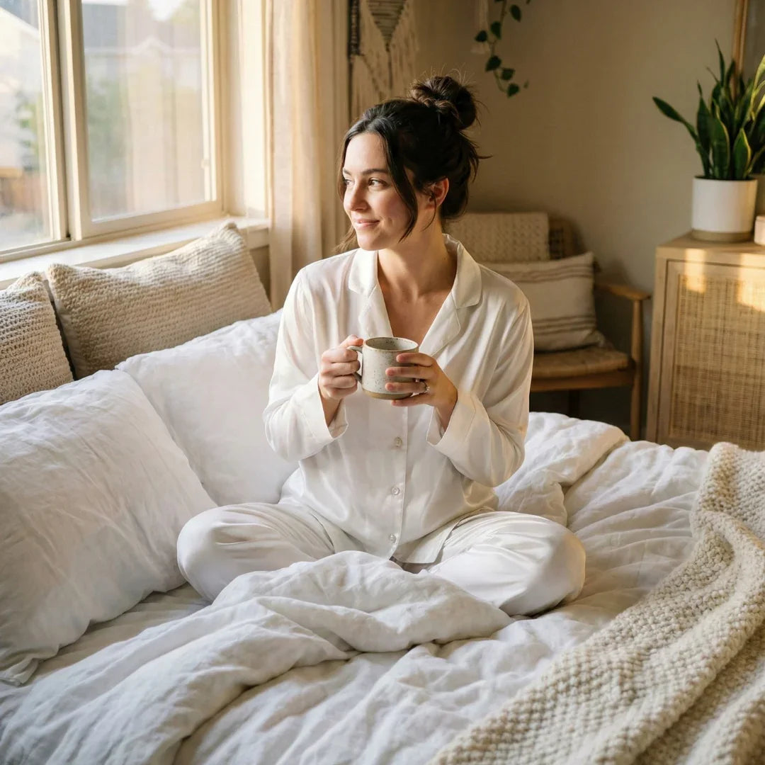 The smooth, breathable fabric caresses the skin and provides natural comfort – cool on warm nights and cozy when it's cooler outside.