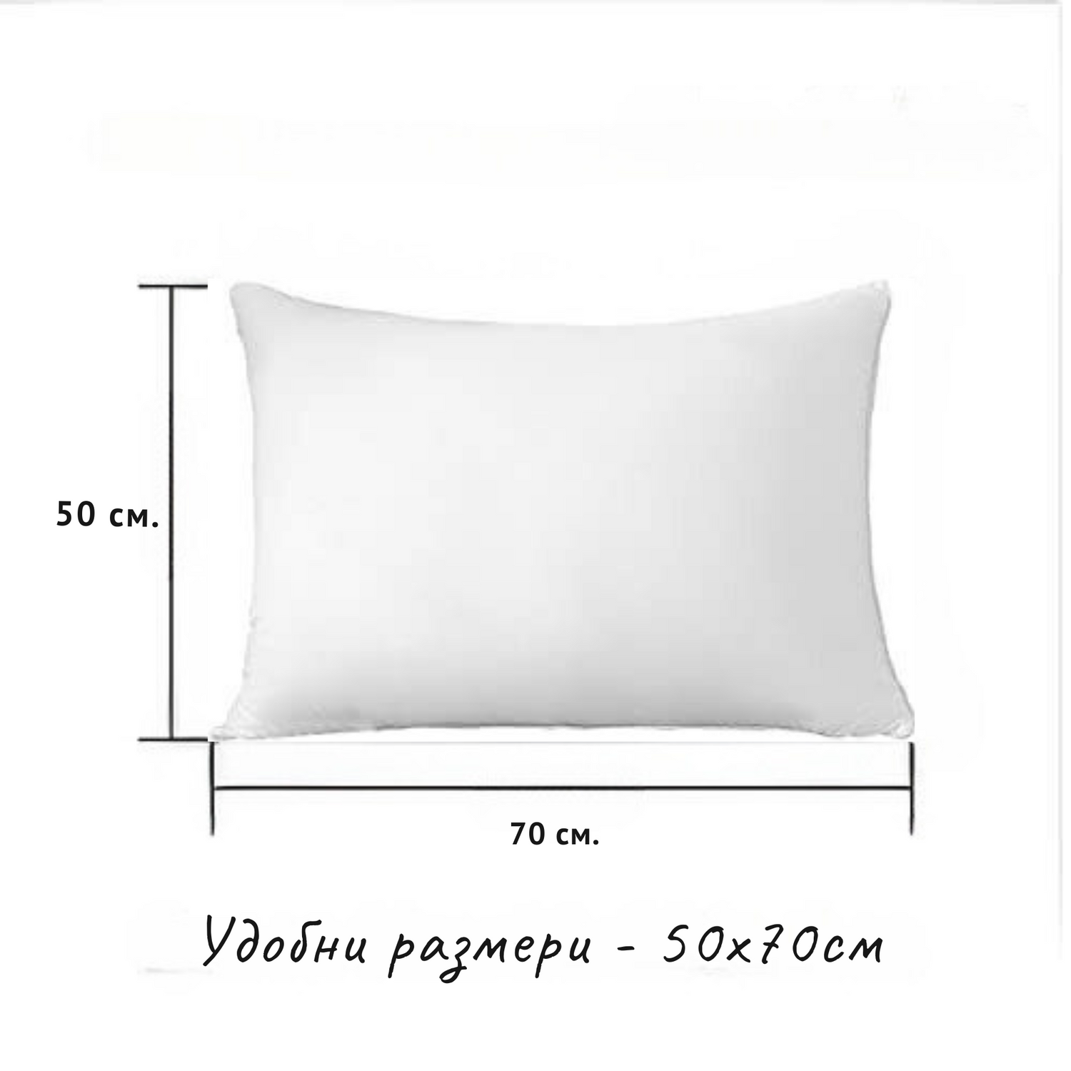 Нашите възглавници са с размери 50х70 см и са изработени от щадящ кожата външен слой от 100% памук и вътрешен слой от издръжлив полиестер с висока плътност.
